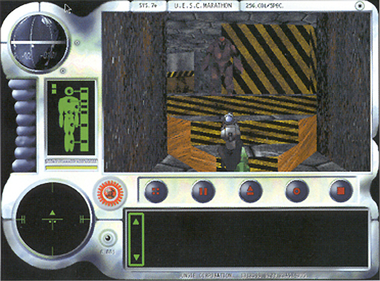 | Source caption | By May of 1994, Marathon began to really take shape. Much of the interface adn graphics were changed later on, including the compas on teh top left, which was taken out of the game because it required too much horsepower (in those days the power PC was still in its infancy). |