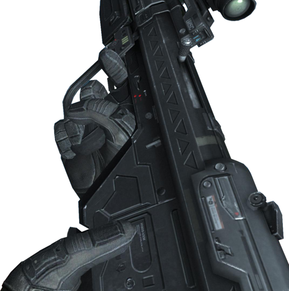 This image is a screenshot of a weapon from the Halo series of first-person shooter video games developed by Bungie Studios or 343 Industries and published by Microsoft. It falls under the screenshot category for a copyrighted computer game or video game, and the copyright for it is most likely held by the company that developed the game. It is believed that the use of a limited number of web-resolution screenshots: