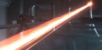 The focus beam appears to be a more powerful iteration of the sterilization beam commonly associated to Sentinels.[3] Though, unlike the standard sentinel beam typically mounted on Aggressor Sentinels, the focus beam is fired from the monitor's lens on its alloy carapace;[1] doing so turns the lens' glowing light from its default coloration to red.[4][5][6][7][8] As with all sterilization beams,[3] the focus beam could seemingly be tuned for multiple power levels; whereas 686 Ebullient Prism's focus beam disintegrated Reff 'Talamee's body, leaving behind only a heap of gore,[9] when 343 Guilty Spark turned on the UNSC-Sangheili team at Installation 08, his initial burst of focus beam only mortally wounded Avery Johnson, even leaving Johnson alive for long enough to assist John-117 in Spark's defeat.[5]