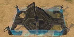 The structure is composed of a delta-shaped structure with a cleave down the approximate center, resembling the Beacon towers on the Halo installations. It is also surrounded by hard light walls with ends meeting at the turrets. When sustaining enough damage, the structure retracts in on itself and into the ground. They are generally defended by beam turrets, Aggressor Sentinels, and Super Sentinels.[1]