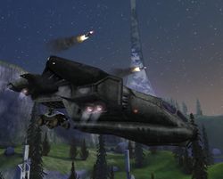 After a few more waves of Covenant, a Pelican dropship appears from the cliffs.