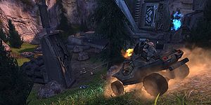 The Chief heads behind the structure to deal with the Covenant forces.