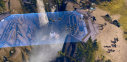 The Halo installations make use of hard light in their firing mechanisms,[11][12] in addition to using hard light as a protective structural reinforcement to stabilize and protect the rings against tidal and gravitational forces from other objects.[13] Although many Forerunner structures project a hard light decorative shell over the structural support elements of the building, almost all buildings seen on the Halo installations or the Ark lack this covering; the Forerunners did not implement such decoration on the Halos' structures, as they were meant to be purely functional.[14] However, the structures on the Halo rings still employ hard light construction for practical purposes.[6] Additionally, any structures that possess hard light decor only activated in the presence of Forerunners;[9] however, due to their status as Reclaimers, the presence of humans will also activate hard-light decoration in certain structures, as seen in the Menachite portal complex.[15]