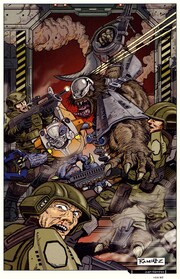 In the Halo Graphic Novel he did the gallery page 117, that shows UNSC Marines being attacked by a Brute and a Grunt.