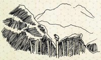 A drawing by Dr. Halsey depicting Carris-137 crying atop one of the poles after accidentally killing one of her trainers.