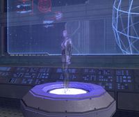 A Covenant holotank in High Charity displaying Cortana's avatar in Halo 2.