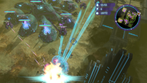 The Stasis Cannon is a Covenant stasis weapon found on the Bkowe'nei-pattern Vampire's frontal section. When fired, it disables the targeted enemy aircraft, rendering it unable to move or fire. Once the Vampire is upgraded with Stasis Drain, the weapon not only stops its target, but also drains its energy regenerating the Vampire itself and making the hostile crash onto the ground. Its second upgrade, Stasis Bomb, causes drained aircraft to explode, inflicting Area Of Effect damage.[1]