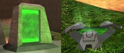 A teleporter, also known as a translocation platform,[1] is a device using the principle of slipspace translocation, allowing for near-instantaneous transport over short distances to another teleporter or teleporter exit point. Teleporters often make up the main components of a teleportation grid on Forerunner installations,[2] although the teleportation grids on the Halo rings allow translocation from any location on the ring without a fixed teleporter.[3][4]