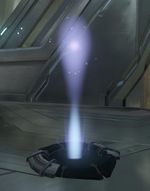 A teleporter, also known as a translocation platform,[1] is a device using the principle of slipspace translocation, allowing for near-instantaneous transport over short distances to another teleporter or teleporter exit point. Teleporters often make up the main components of a teleportation grid on Forerunner installations,[2] although the teleportation grids on the Halo rings allow translocation from any location on the ring without a fixed teleporter.[3][4]