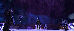 Numerous Covenant troops soon drop from the cruiser's Gravity Lift, engaging the team.