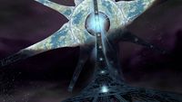 Like the rest of the newer, more efficient Halo Array, Installation 00 was constructed sometime between 98,445 BCE and 97,445 BCE under orders of Master Builder Faber, to address problems with the greater Ark and its larger Halos. While plans for the second Ark had existed for some time, its construction was delayed by the Old Council to avoid the Builders from gaining too much power.[15] The lesser Ark, as it was known at the time, was designed to produce smaller but much more powerful Halo rings, which could be transported more efficiently and could deal far more widespread damage. Until the very last days of the Forerunner-Flood war, the lesser Ark, its new Halos, and its location were kept a well-guarded secret; only the most top-tier Forerunners knew of its existence, and the only one who knew the exact coordinates of the installation was Faber. Whereas the greater Ark acted as the Forerunners' final line of defense and command center, the lesser Ark would serve the function of a last fallback point where its own array of rings could be swiftly distributed to their designated locations across the galaxy and fired to cleanse the galaxy of all sentient life as a last resort.[16] In the endgame of the Forerunners' war with the Flood, the Forerunner Contender-class artificial intelligence Mendicant Bias, which had been corrupted by the Gravemind and defected to the Flood, attacked and destroyed the greater Ark, killing the majority of the remaining Forerunners who had taken refuge there. Using coordinates provided by the Master Builder, a handful of survivors, including the IsoDidact, managed to escape to the lesser Ark where they prepared their weapons of last resort. In order to buy the IsoDidact time, the Librarian traveled to Earth, broadcasting a feint transmission intended to draw the Flood's attention to her. She spent her last days in the plains near Mount Kilimanjaro, near the site of the slipspace portal to Installation 00. Mendicant Bias knew of the secret Ark and how to access it through the Keyships, though he did not know of its exact location. In order to devise the best possible defense against Mendicant Bias, the Forerunners deployed Offensive Bias, a military AI formerly in control of the greater Ark and Mendicant's replacement, and sent it to counter Mendicant Bias' fleet in advance before it could reach the Ark. While Offensive Bias engaged Mendicant's fleet, the IsoDidact completed preparations for the Halo Array and fired the rings from the Ark, purging the galaxy of all life. Following the Array's firing, Offensive Bias defeated Mendicant Bias within minutes. Offensive decided to spare the last portion of its opponent and delivered it to Installation 00 for study. There, the remaining Forerunners, led by the IsoDidact, held a trial for the AI for betraying the ecumene. The Didact decided to keep Mendicant alive as it had intimate knowledge of the Flood and could be called upon in case of their return. Bias was entombed in the installation with only one thought allowed to him: atonement.[17] Battle of Installation 00[edit]